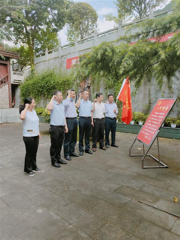 在革命烈士纪念碑前,全体党员同志集体默哀鞠躬,重温入党誓词,深切缅怀彭咏梧先烈的崇高精神和不朽伟业。
